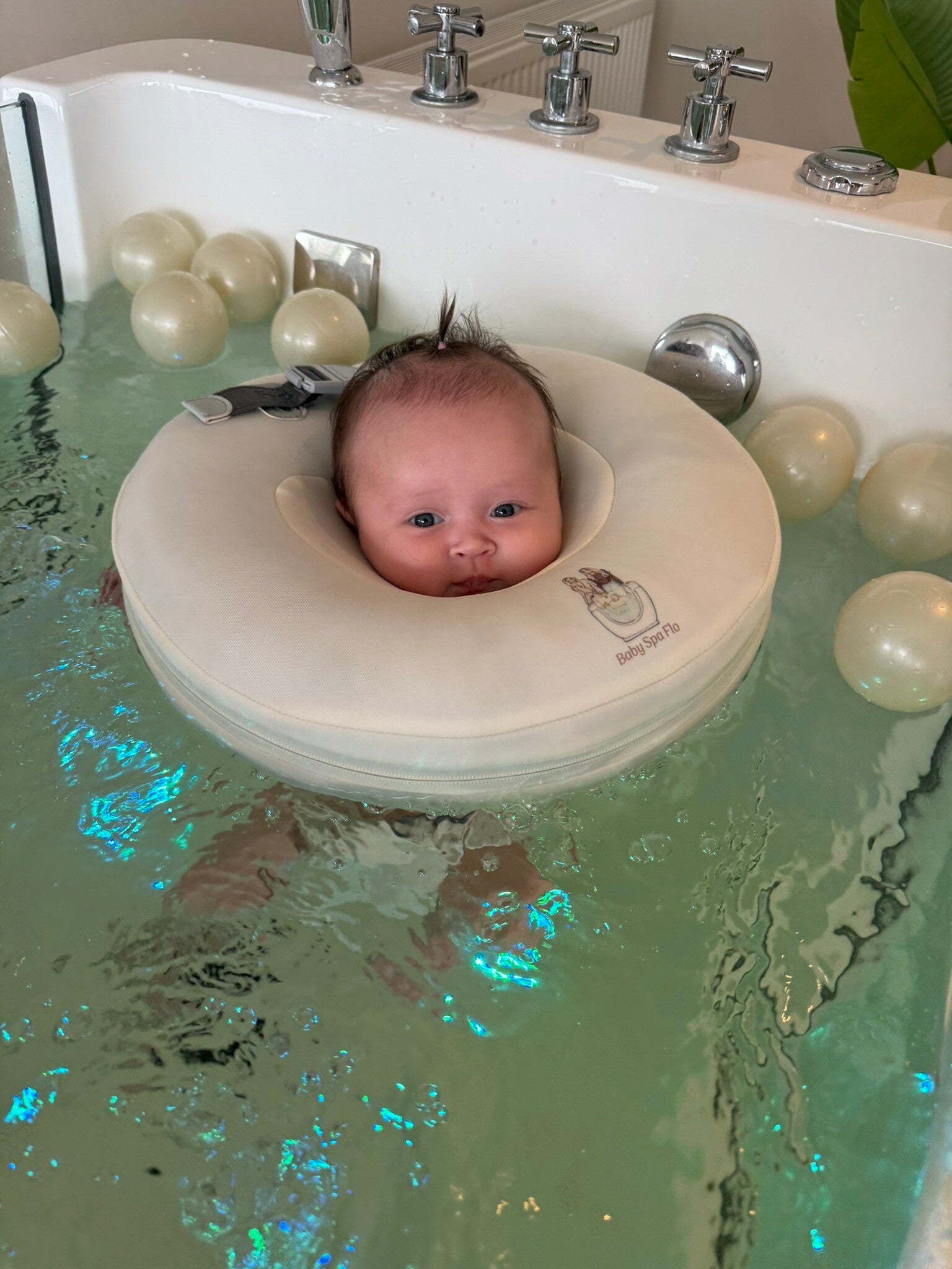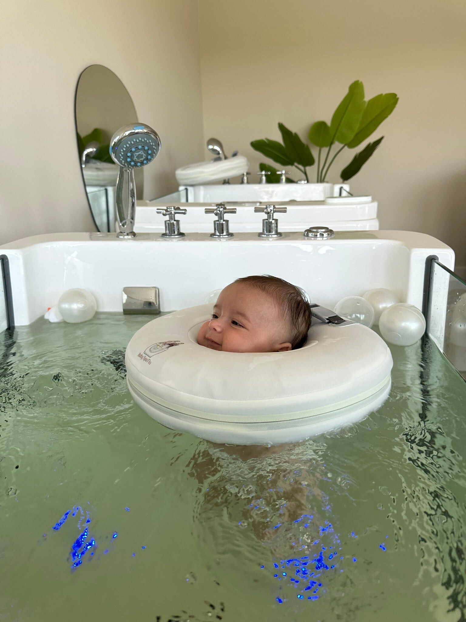 Babyfloaten of ook wel hydrotherapie vindt plaats in een speciale baby jacuzzi met gezuiverd water wat op lichaamstemperatuur wordt gehouden. Jouw baby drijft in een speciale drijfband om het nekje (tot 8 maanden), in een borst/rug band of een zit band. Jouw baby drijft hierdoor helemaal vrij en gewichtsloos in de baby jacuzzi onder professionele begeleiding.